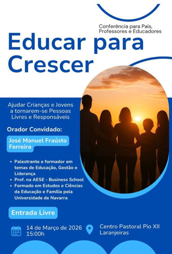 O encontro contará com a presença de José Manuel Fraústo Ferreira, palestrante e formador nas áreas da Educação, Gestão e Liderança. O orador é professor na AESE – Business School e possui formação em Estudos e Ciências da Educação e Família pela Universidade de Navarra.