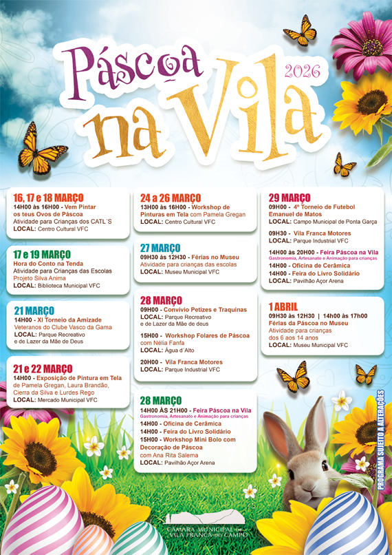 Com esta iniciativa, a Câmara Municipal de Vila Franca do Campo pretende assinalar a época pascal com um programa diversificado, que incentiva a participação da comunidade, valoriza os espaços culturais e desportivos do concelho e reforça a dinâmica social e cultural do município.